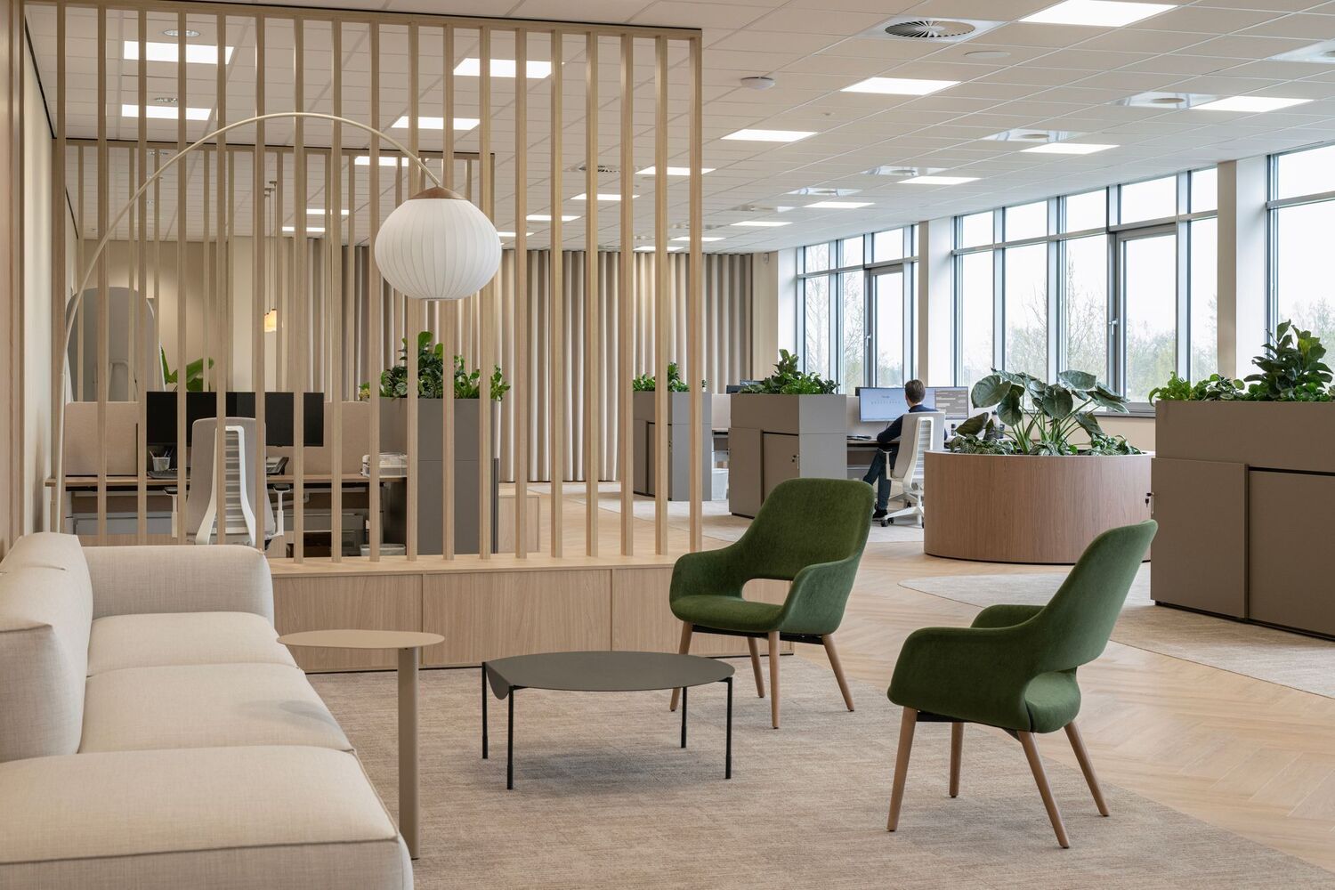 De HALO werkplekken vormen dankzij hun ronde vormgeving en duurzame karakter een zeer passende oplossing voor dit kantoor. Ze sluiten perfect aan bij de warme en huiselijke uitstraling van het interieur en dragen bij aan een moderne, toekomstbestendige werkomgeving.